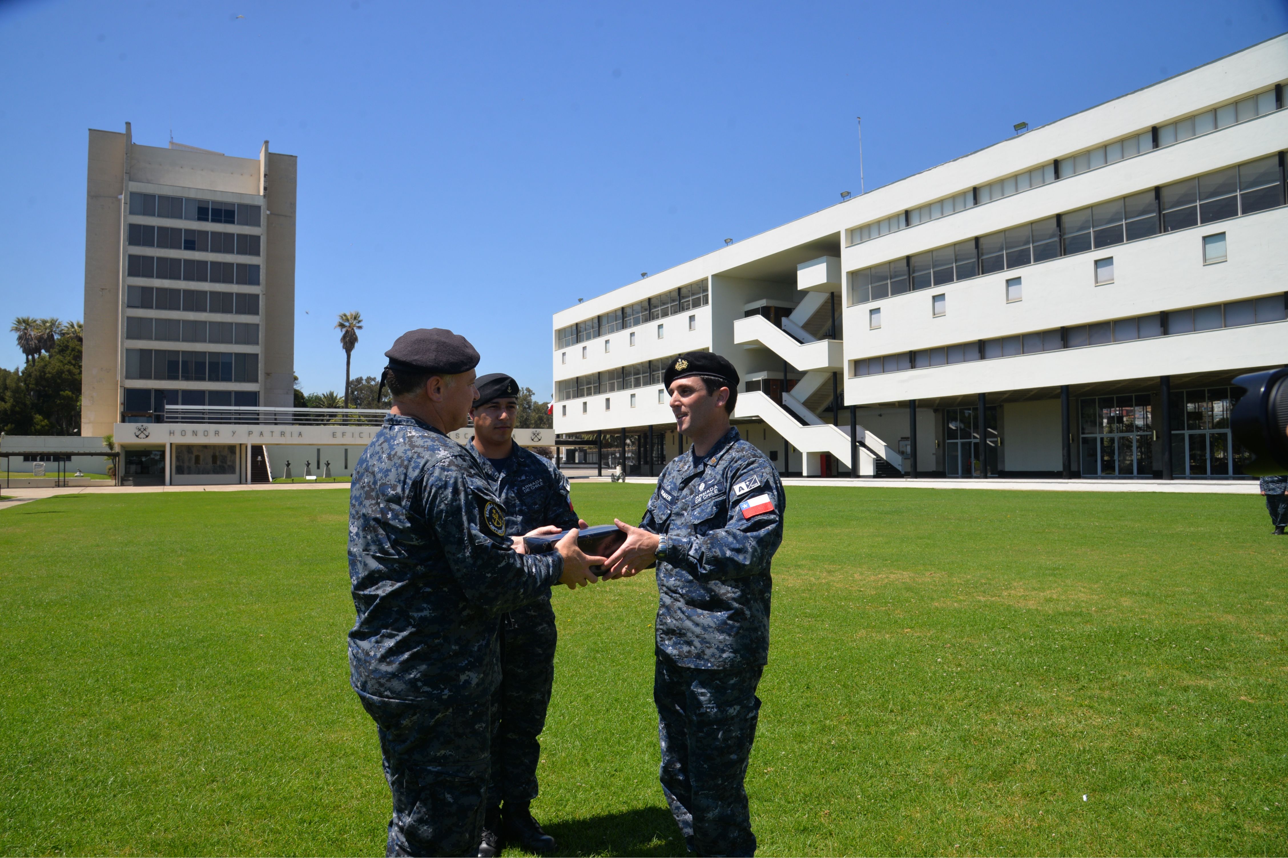 En reconocimiento a su trabajo y compromiso con la formación naval, el Director de la Escuela Naval, Capitán de Navío Juan Pablo Castro Brahm, hizo entrega de un reconocimiento al Comandante Ugarte, valorando su destacado aporte a la gestión académica y administrativa del establecimiento.
