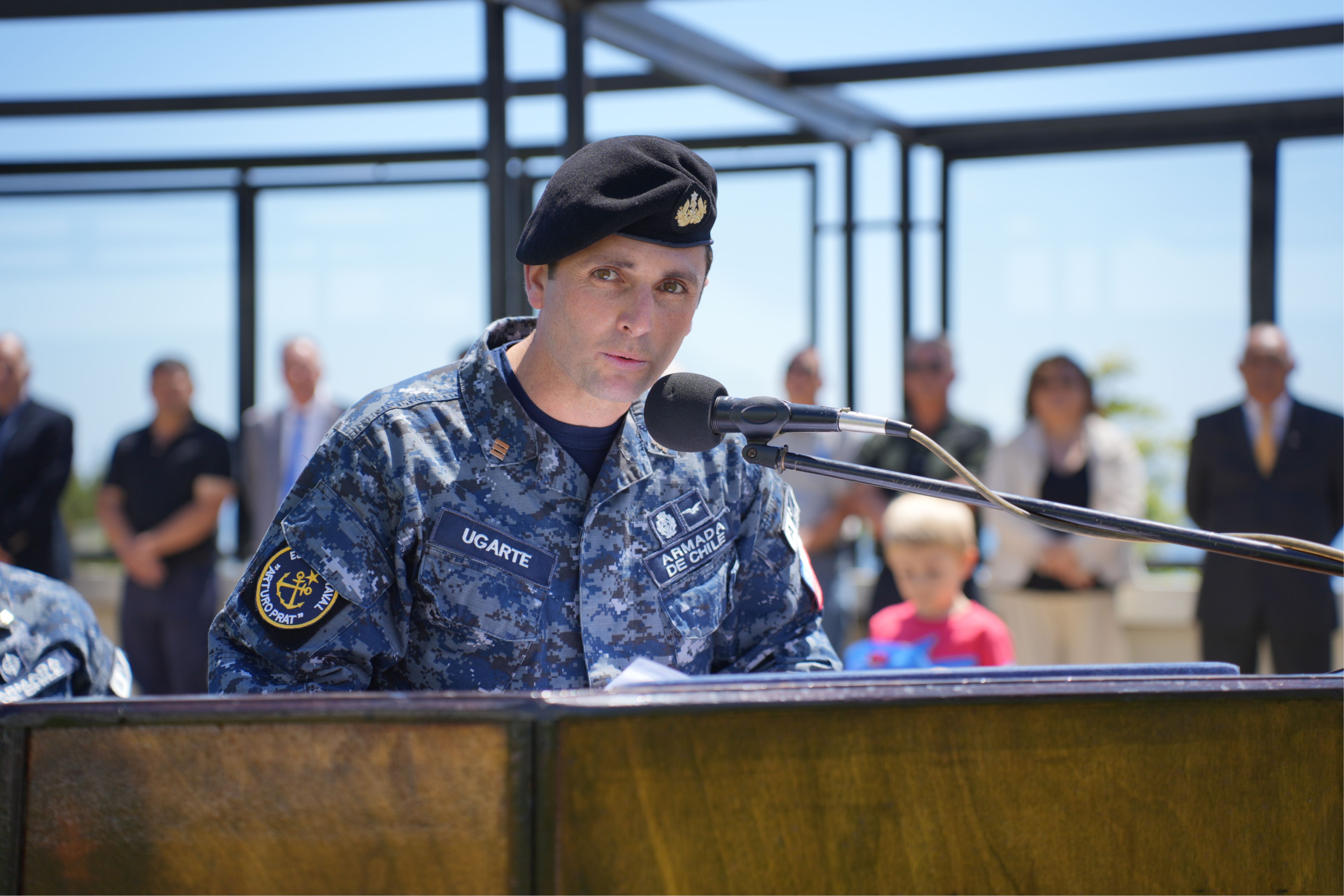En el discurso de despedida, el Comandante Ugarte agradeció a los miembros de la dotación de la Escuela Naval, por su permanente apoyo a la gestión y, reconoció el valioso aporte de todos los integrantes del plantel, en el proceso de formación integral de los futuros Oficiales de Marina.
