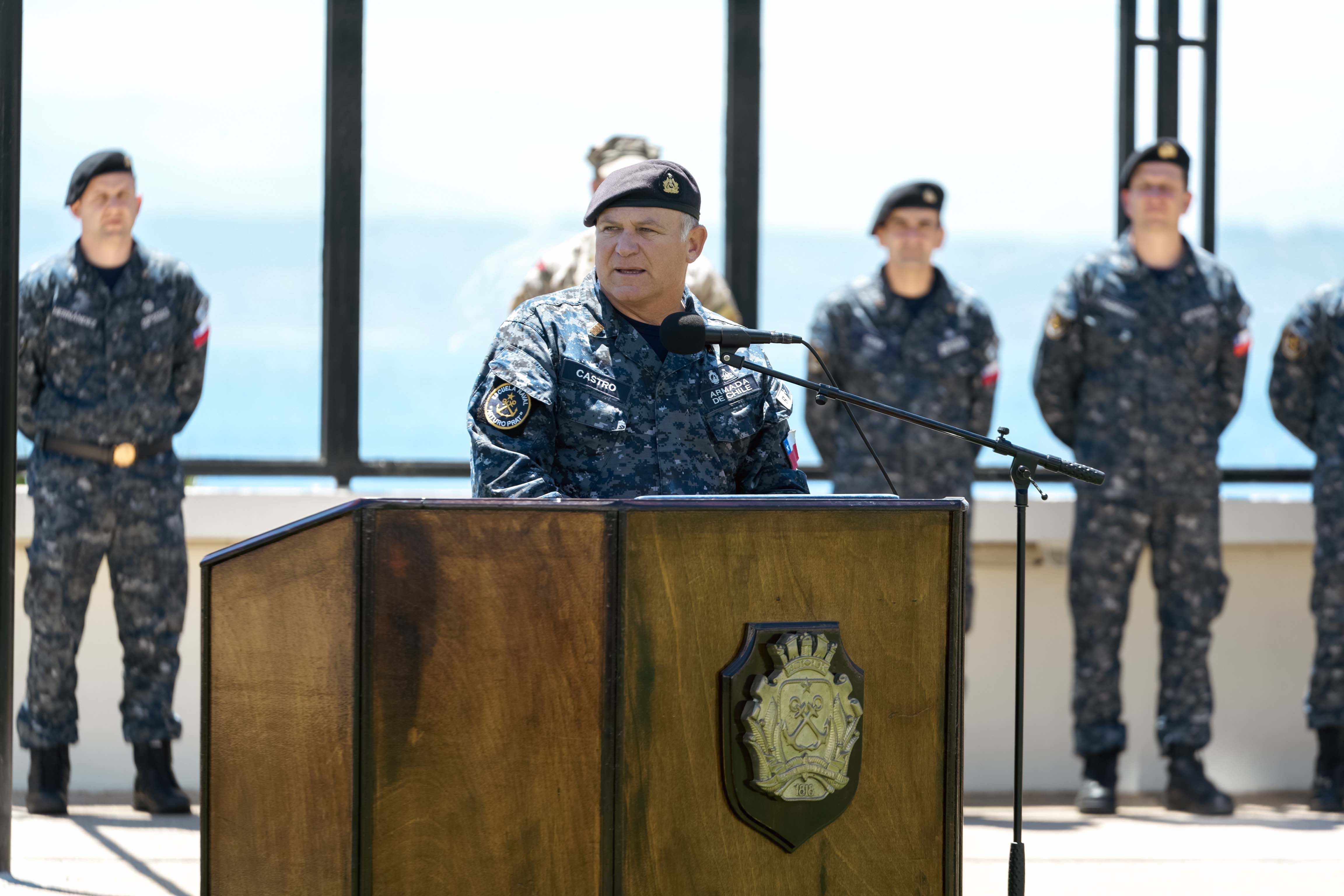 La ceremonia fue presidida por el Director, Capitán de Navío Juan Pablo Castro Brahm, quien se dirigió a los presentes destacando la relevancia de su formación naval, enfatizando la importancia de asumir con convicción el régimen disciplinario que caracteriza a la vida en la Escuela, así como la responsabilidad que conlleva el cumplimiento estricto de los deberes y obligaciones propias del servicio.
