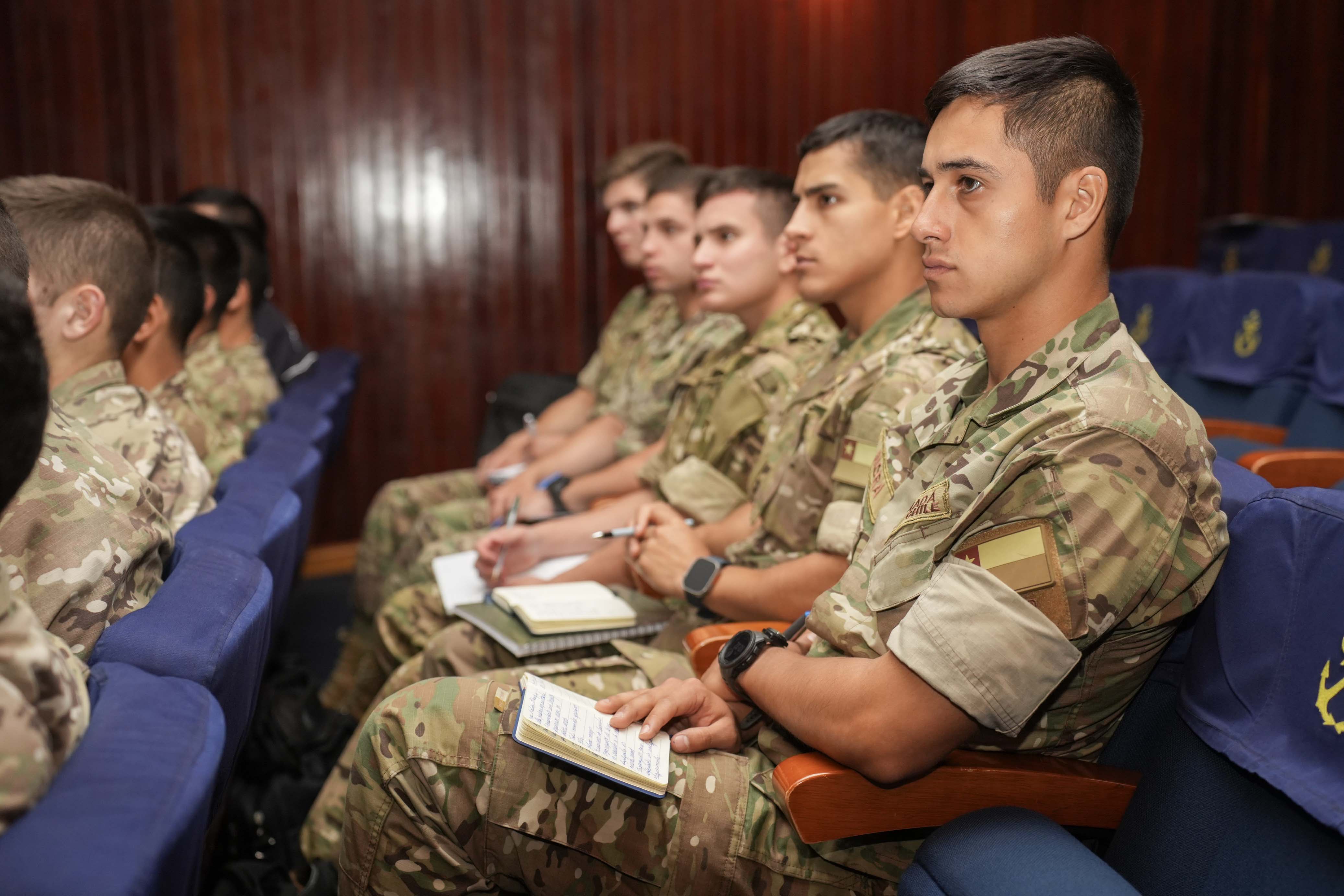 En el marco de la asignatura de Táctica Anfibia, Brigadieres y Cadetes del escalafón de Infantería de Marina (IM) de la Escuela Naval “Arturo Prat” recibieron el testimonio directo de Oficiales que se desplegaron durante la crisis del Beagle en el Teatro de Operaciones Austral.