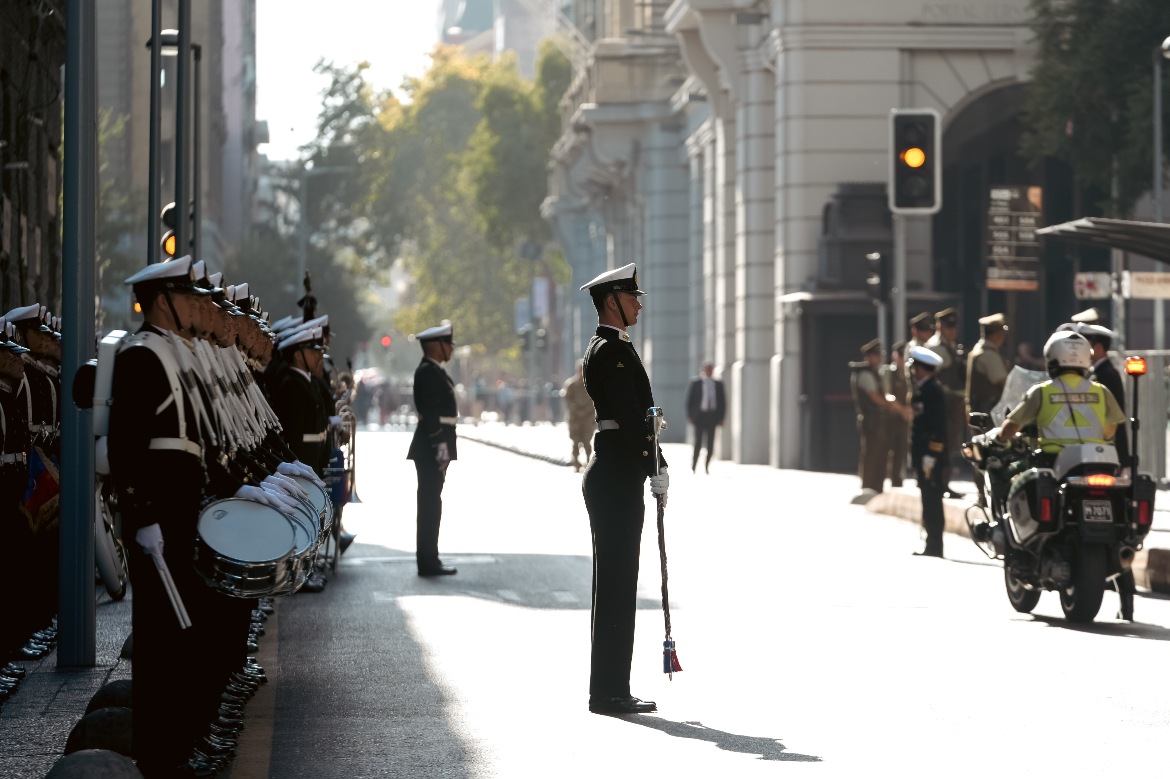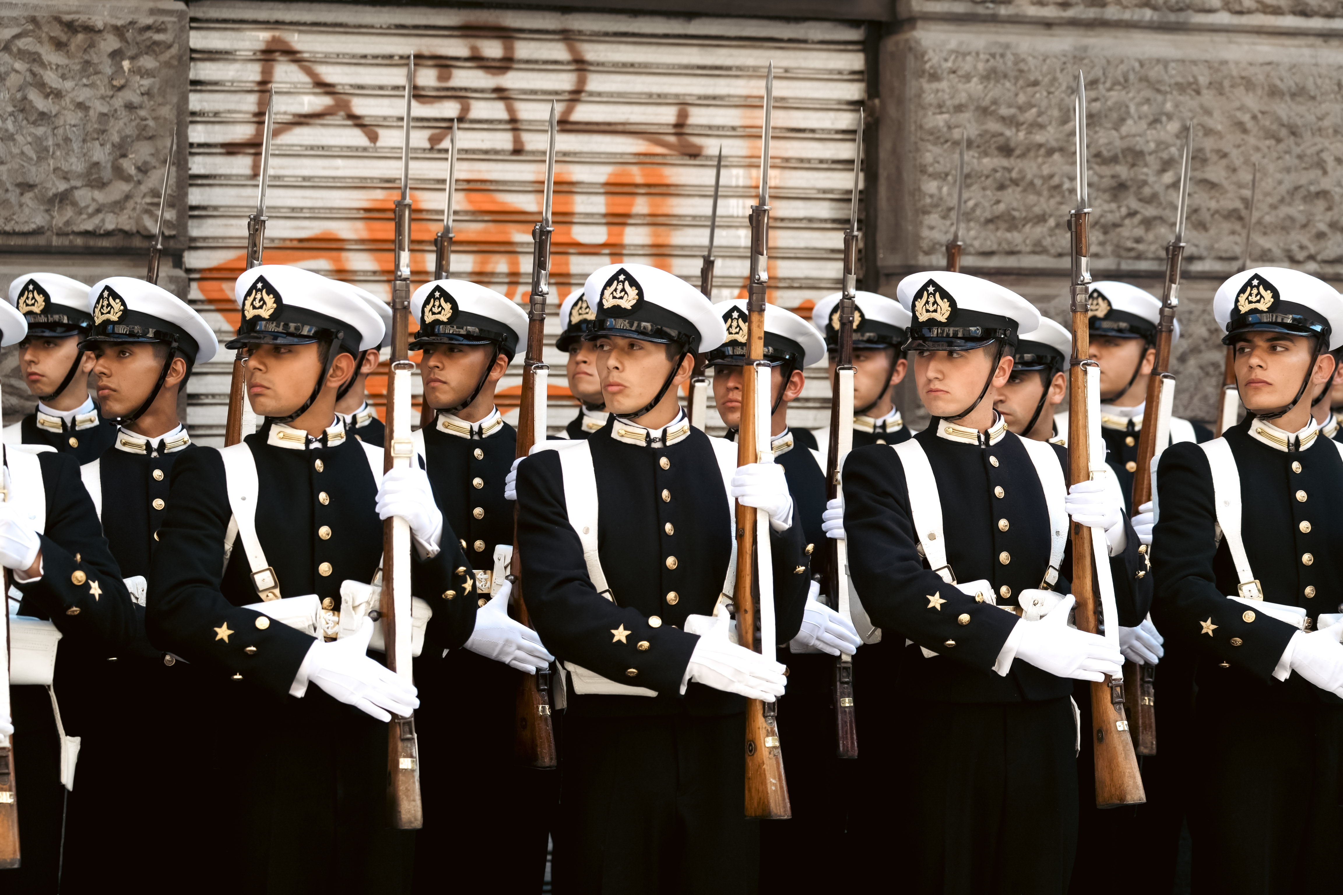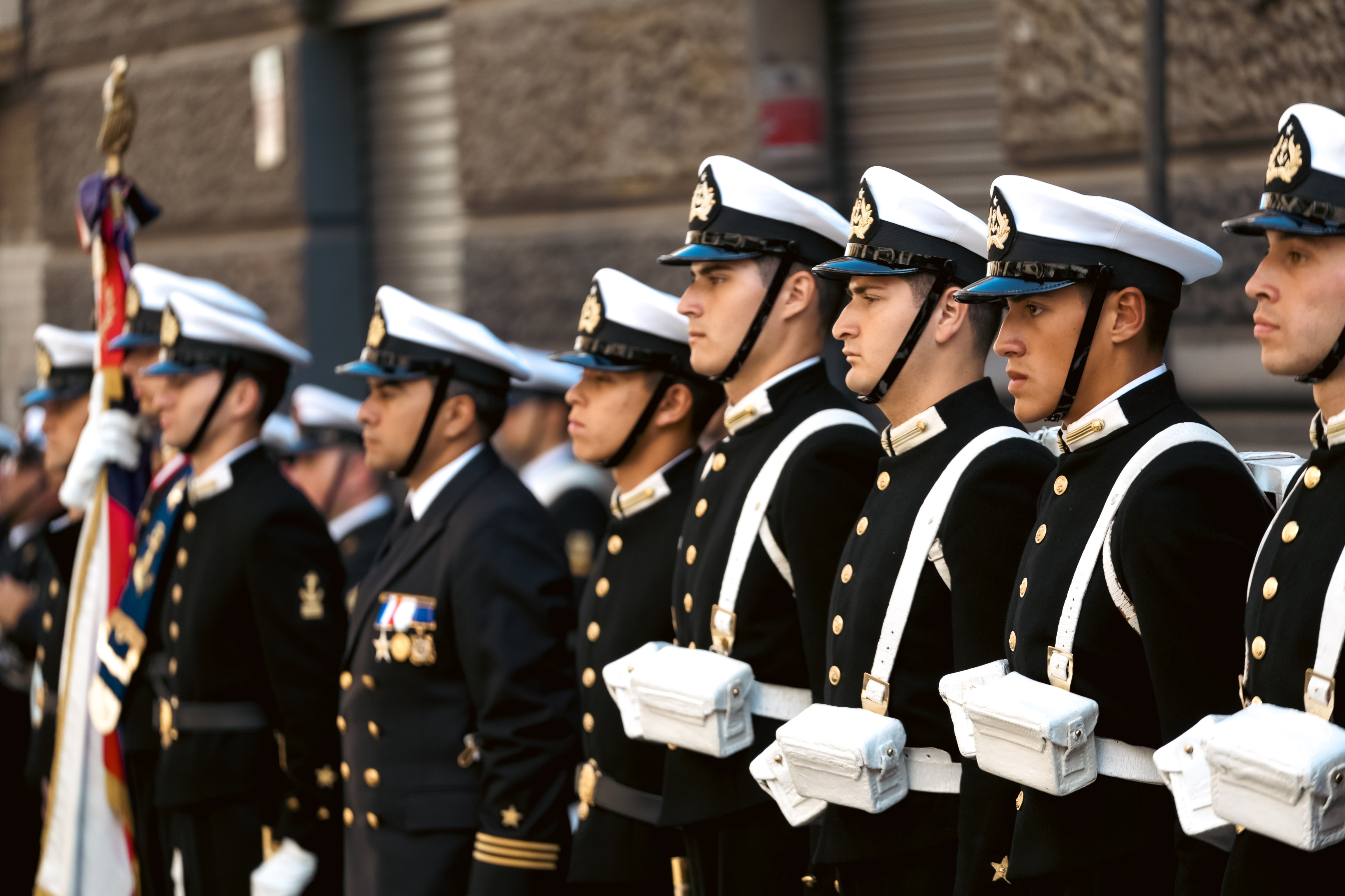 Una delegación de Cadetes de la Escuela Naval Arturo Prat, junto a su respectiva Banda de Guerra, rindió honores al Presidente de la República, José Antonio Kast, durante su paso hacia la Catedral Metropolitana de Santiago, donde se llevó a cabo la tradicional Misa de Oración por Chile.